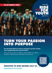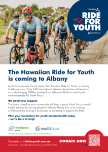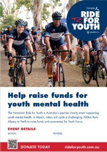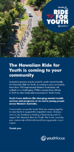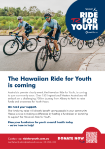 Fundraising for the Hawaiian Ride for Youth helps Youth Focus to deliver life-changing mental health support to young Western Australians. Thank you for making a difference.